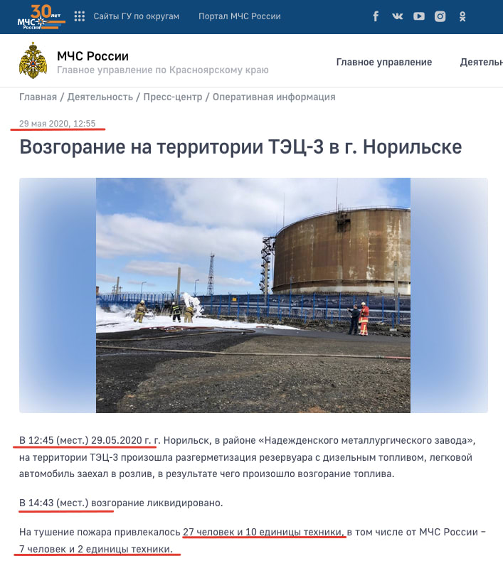 В сообщении говорится, что в 12-45 произошла разгерметизация резервуара с дизельным топливом. Из МЧС было 7 человек. То есть – знали!