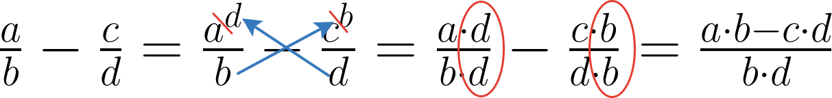 Формула вычитания дробей: